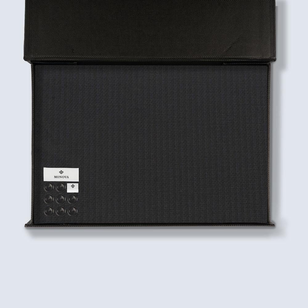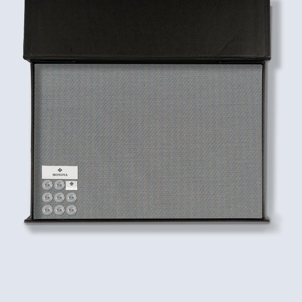 نقشة مونوفا تتميز بالرقي؛ فهي مقلمة بدقة تمنح القماش فخامة بصرية دون مبالغة، مما يجعلها مناسبة جداً للرسميات