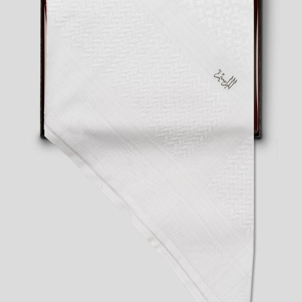 ارتقِ بإطلالتك مع شماغ المراسيم الأبيض الكلاسيكي، المصنوع من أجود خيوط القطن الخالص بنسبة 100%. تصميمه الحديث يجمع بين البساطة الراقية والتفاصيل المتقنة، ليمنحك حضورًا رسميًا يليق بالمناسبات الرفيعة.